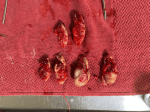 Am besten geht das bei uns am NPZ weil wir dort die optimale Infrastruktur und UnterstĂŒtzung dafĂŒr haben. Das Pferd wird sediert, wie fĂŒr eine normale Zahnbehandlung, und die TierĂ€rztin macht zusĂ€tzliche eine örtliche BetĂ€ubung der SchneidezĂ€hnen. Danach werden die SchneidezĂ€hnen eins nach dem anderen (im Fall einer Extraktion mehreren ZĂ€hnen) gelockert und dann gezogen. Danach spĂŒlt man die leeren ZahnfĂ€cher aus und setzt einen mit Kamillenextrakt getrĂ€nkten Tupfer in die ZahnfĂ€cher. Dieser löst sich hĂ€ufig selbst oder kann nach 1-2 Tagen gezogen werden. Das Pferd darf am gleichen Tag wieder nach Hause und in der Regel heilt das Zahnfleisch komplikationslos ab. Bei der Extraktion mehrerer SchneidezĂ€hne kann es vorkommen, dass das Pferd danach die Zunge aushĂ€ngen lĂ€sst – dies ist aber fĂŒr das Pferd gar kein Problem, sieht nur ein wenig lustig aus!